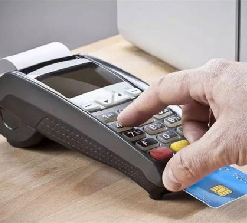 信用卡印刷有閃付標志,在POS機器上輸入金額后,用卡碰一下POS機器進行付款。